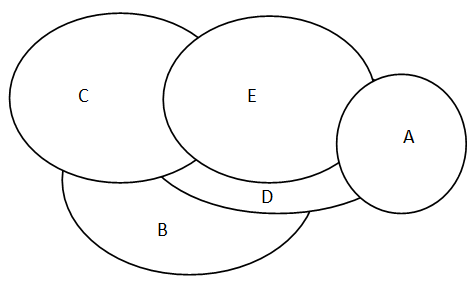 A figura a seguir ilustra a vista superior de cinco fichas colocadas umas sobre as outras.