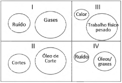 I-Usinagem; Il-Soldagem; III-Almoxarifado; IV-Manutenção.