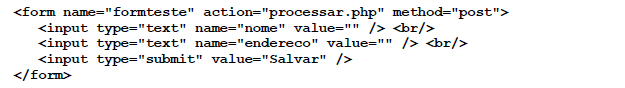 Considere o seguinte formulário em HTML, que é submetido para “processar.php”: