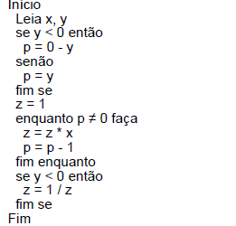 Considerando o algoritmo abaixo, assinale a alternativa correta.